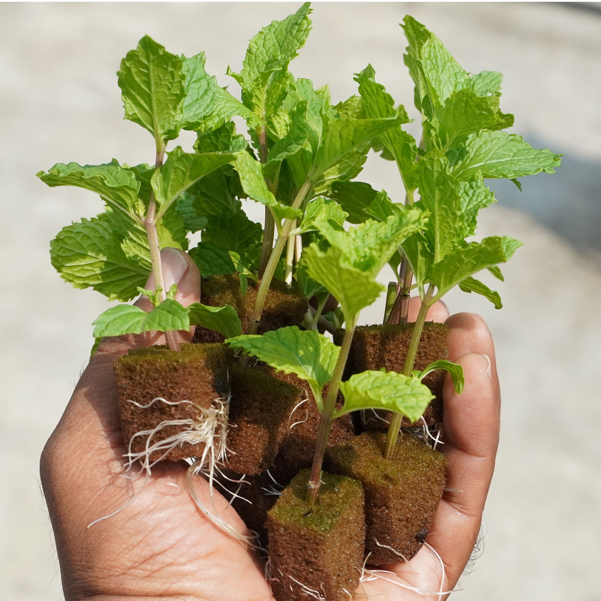 This set includes 10 fresh and healthy mint saplings, each 3 weeks old and well-rooted, grown in Oasis sponge to ensure safe shipping and optimal growth. These plants are easy to transplant and can be grown in soil, grow bags, pots, or hydroponic systems, making them ideal for home gardens, balconies, and kitchen setups.