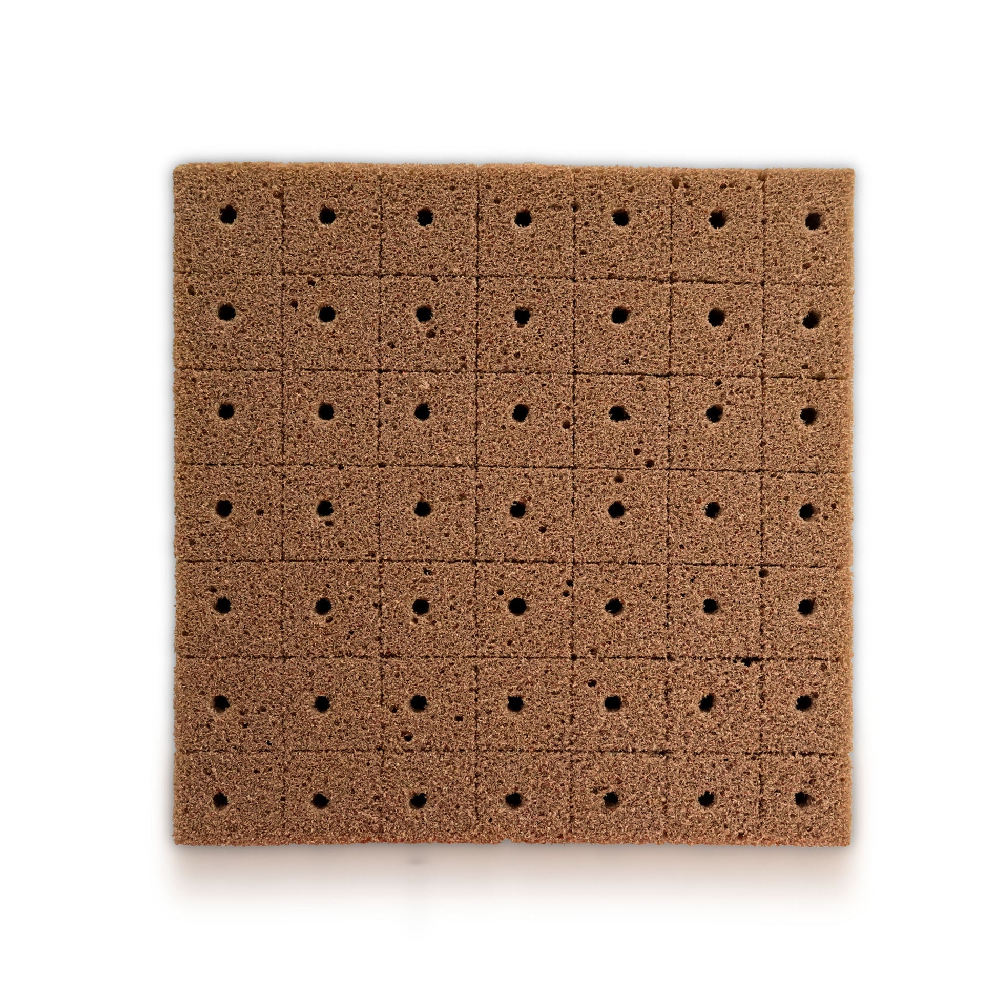 The foam features reduced density and improved drainage, fostering an optimal air-to-water ratio amid substantial watering. This design curtails moisture at the medium's surface, mitigating algae proliferation. The lower foam density facilitates robust root development. Ideal for hydroponic cultivation, the user-friendly sheets are pre-scored for effortless extraction of individual cubes, blocks, or strips. Particularly suited for lettuce, herbs, and various vegetables, these plugs simplify the challenges of hydroponic production, offering growers an efficient solution.
